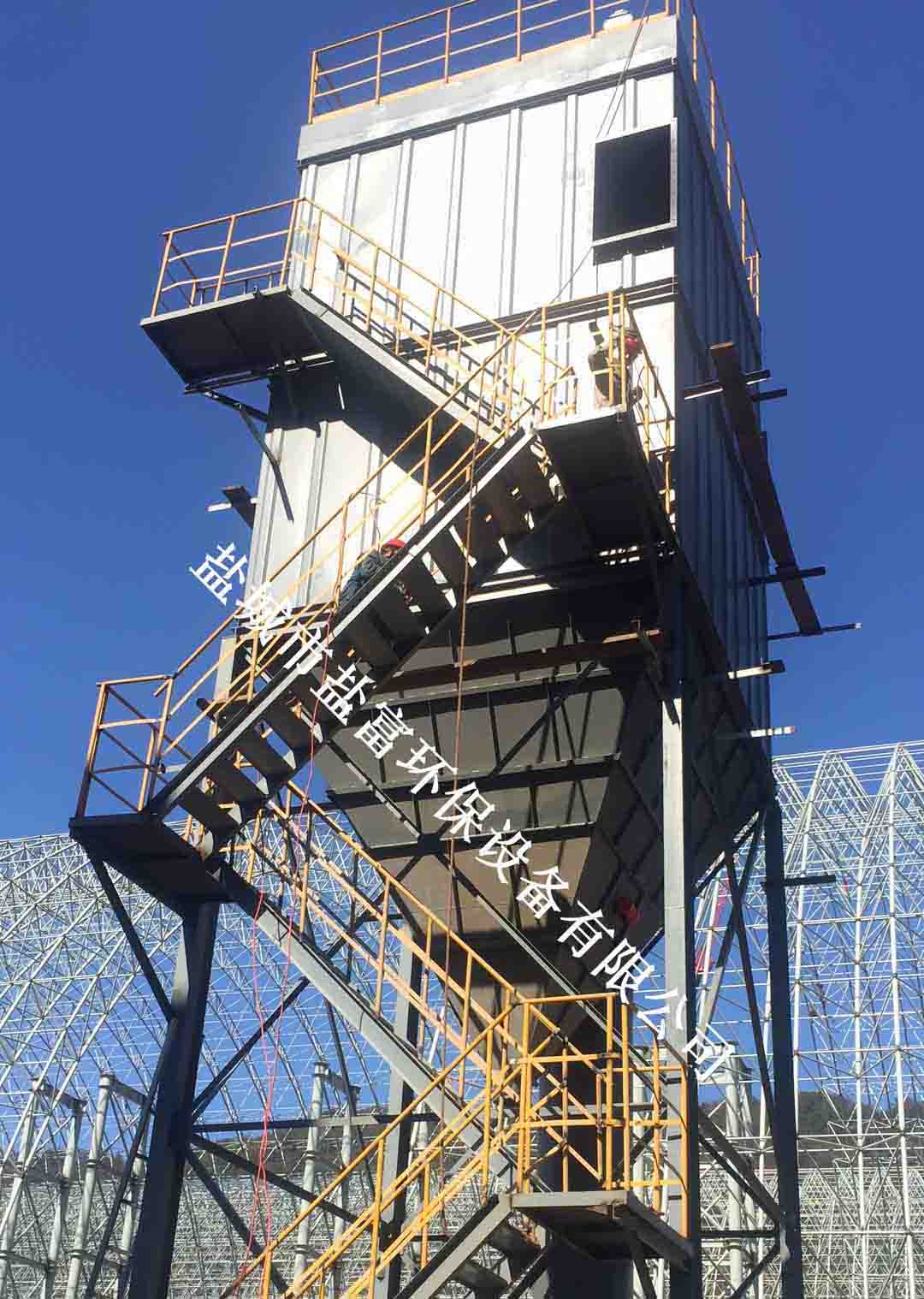 位于池州市貴池區(qū)牌樓鎮(zhèn)的在建綠色建材砂石骨料供應基地——中電建安徽長九新材料股份有限公司(神山)灰?guī)r礦綜合開發(fā)項目的工地現(xiàn)場,由我司供應的布袋除塵器正在加緊安裝中。